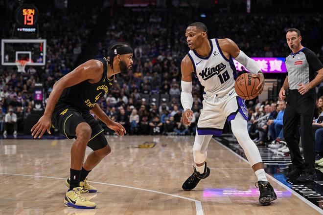 国王擒勇士队NBA常规赛争夺继续,国王坐镇主场迎来与勇士队的较量,本场库里、追梦、巴特勒、小萨与拉文数名核心球员均缺席,最终残阵国王121-116击败同样是残阵的勇士队。由于两队都是残阵,反而给了部分此前轮转不太靠前的球员足够的自证机会,其中就包括身背底薪的威少,他再度轰下三双刷爆纪录成为NBA历史首人。